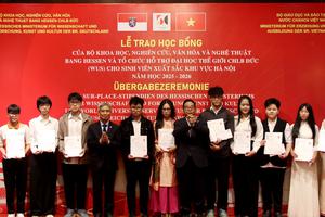 Chiều 12/12 tại di tích Quốc gia đặc biệt Văn Miếu – Quốc Tử Giám, Bộ Khoa học, Nghiên cứu, Văn hóa và nghệ thuật Bang Hessen và tổ chức hỗ trợ Đại học thế giới Cộng hòa Liên bang Đức (Wus) đã trao 84 xuất học bổng cho sinh viên xuất sắc Việt Nam năm