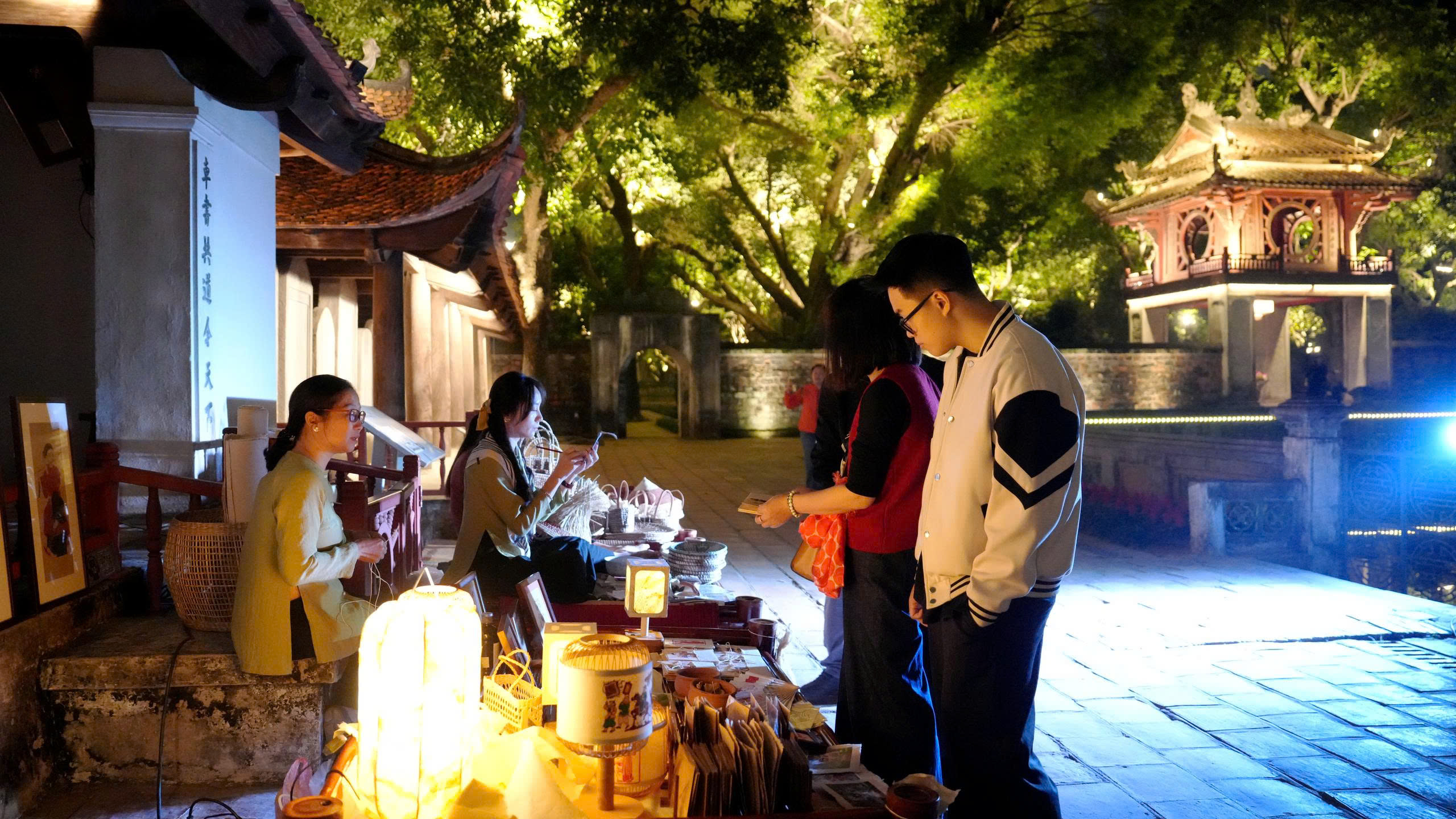 Du khách trải nghiệm các nghề truyền thống trong không gian đêm tại di tích Văn Miếu - Quốc Tử Giám
