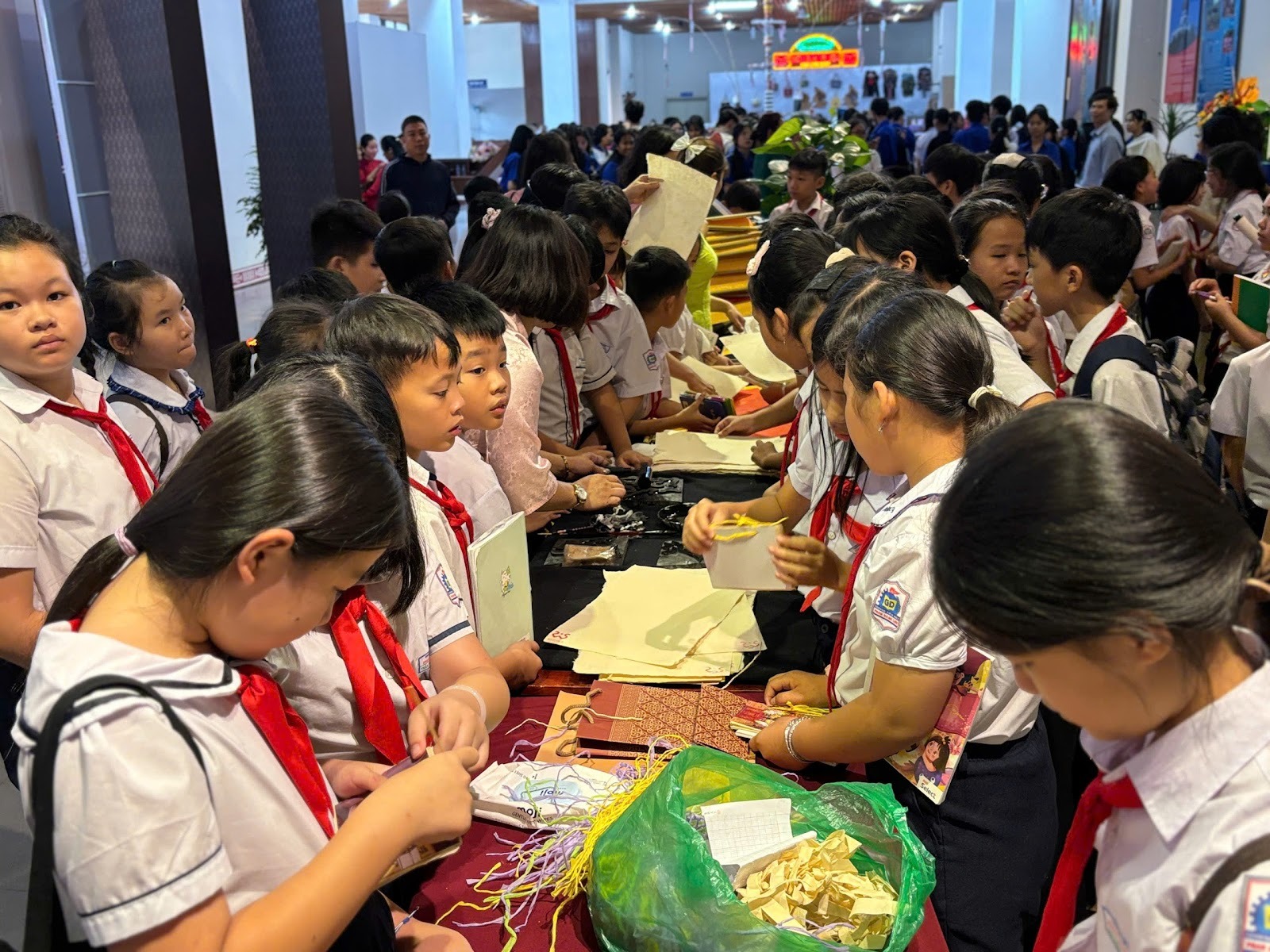 Bên cạnh trưng bày, triển lãm còn mang đến chuỗi hoạt động trải nghiệm di sản phong phú: lớp học xưa của nho sinh, viết chữ Hán cổ, in mộc bản bia Tiến sĩ, khám phá sách học và đóng sách bằng giấy Dó truyền thống.