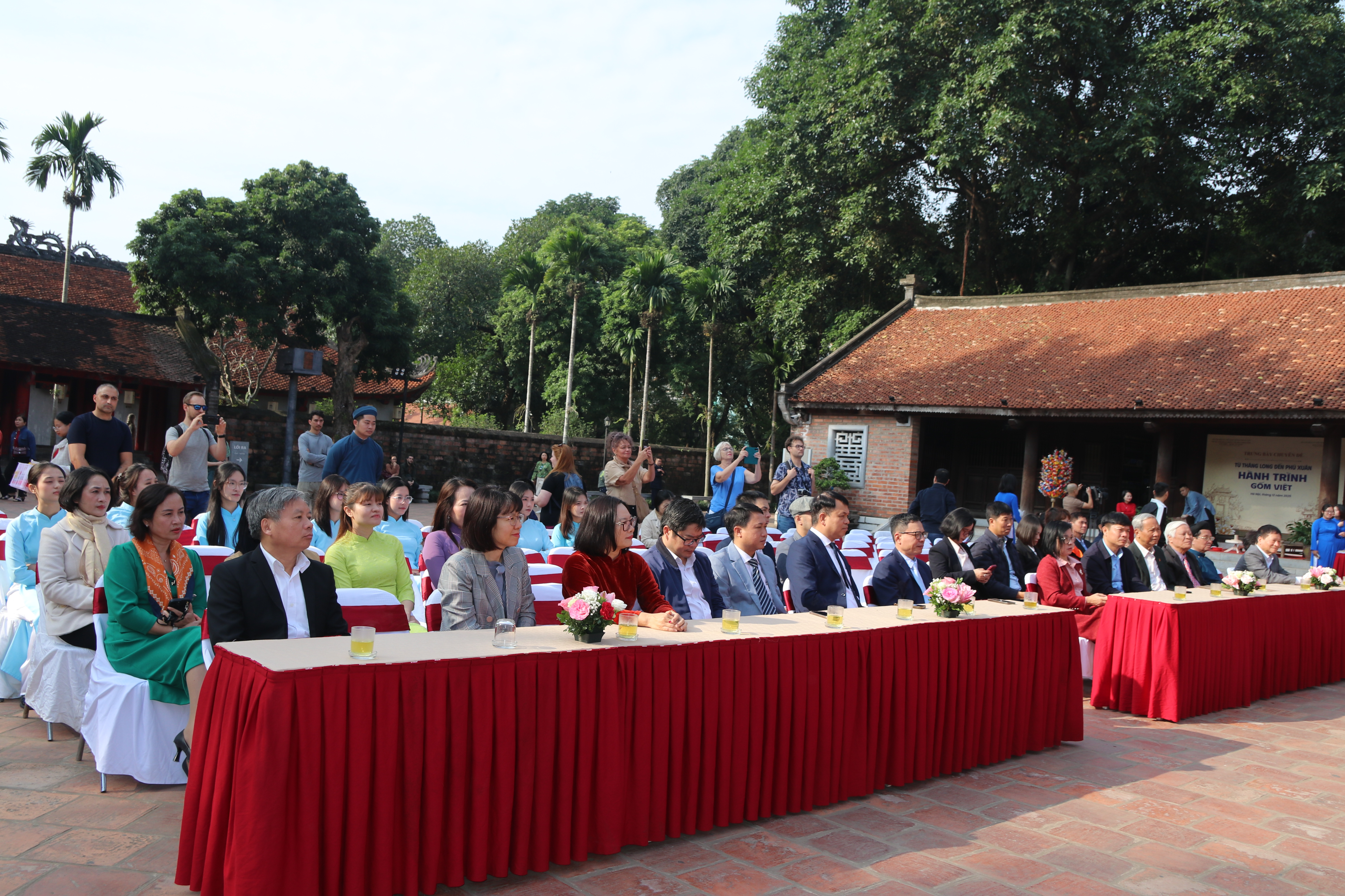 Attending the opening ceremony were Mr Nguyễn Thiên Bình, Deputy Director of the Huế Department of Culture and Sports; Ms Nguyễn Thị Minh Hạnh, Head of the Department of Organisation and Legal Affairs, Department of Culture and Sports; Assoc. Prof. Dr. Đỗ Văn Trụ, Chairman of the Vietnam Cultural Heritage Association; Dr. Nguyễn Viết Chức, former Deputy Head of the National Assembly’s Committee on Culture and Education and former Director of the Hanoi Department of Culture and Information; Dr. Phan Đăng Long, Vice Chairman of the Hanoi Historical Society; Dr. Nguyễn Thị Dơn, Vice Chairwoman of the Thăng Long – Hanoi Cultural Heritage Association; Mr. Đặng Sơn Hải, Head of the Relic Management Board and Ceremonial Committee of Giang Cao Communal House, Bát Tràng Commune, Hanoi, together with artisans and residents of Bát Tràng; Mr. Nguyễn Đức Lộc, Director of the Huế City Museum of History; and representatives of the leadership of the Văn Miếu – Quốc Tử Giám Center for Cultural and Scientific Activities.