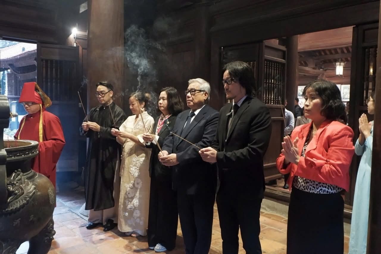 Ban tổ chức và đại biểu tham gia tọa đàm dâng hương tại nhà Thái Học