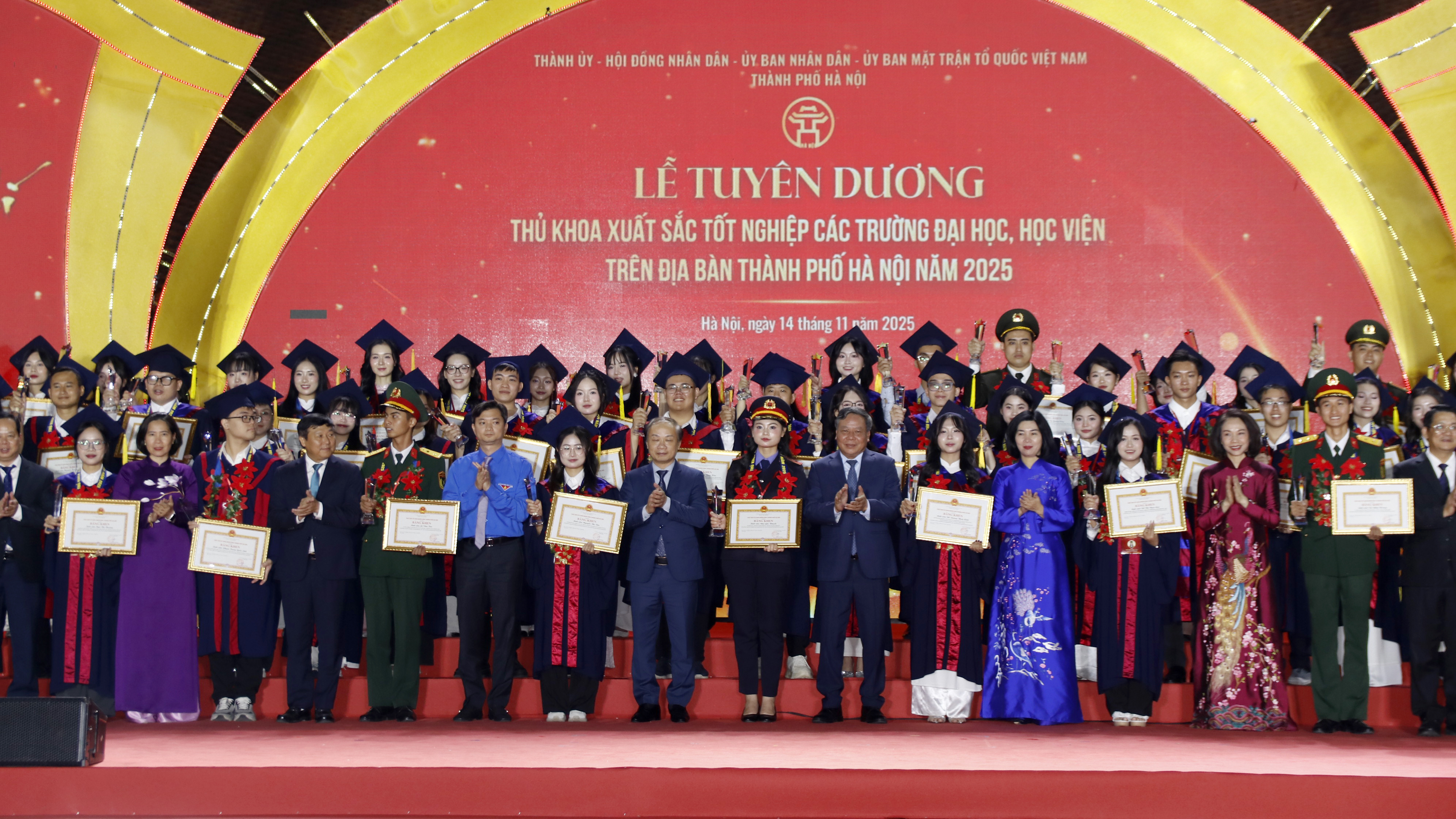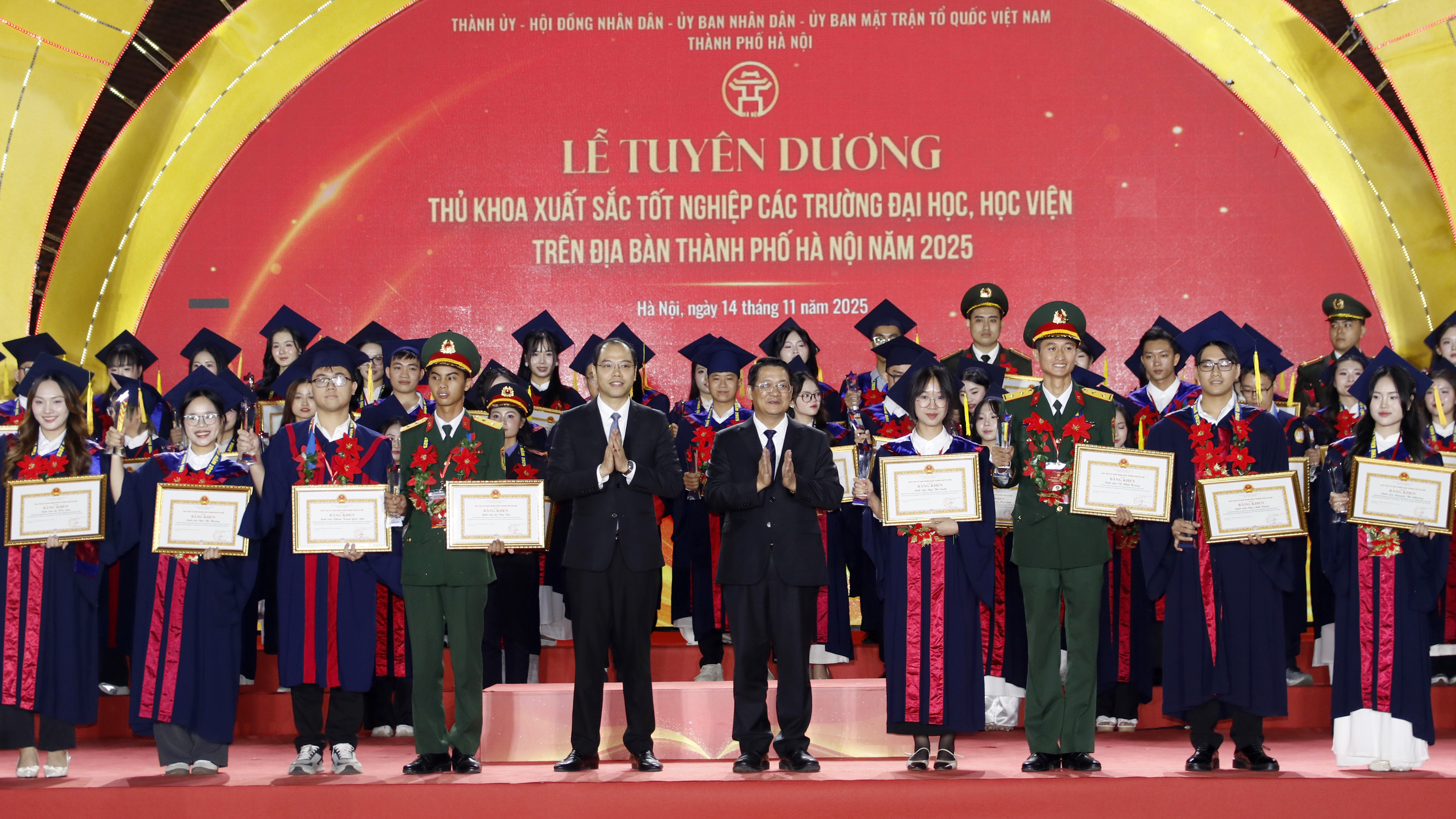 Tối 14/11, tại Di tích Quốc gia đặc biệt Văn Miếu - Quốc Tử Giám, Thành ủy, Hội đồng nhân dân, Ủy ban nhân dân, Ủy ban mặt trận tổ quốc Việt Nam thành phố Hà Nội đã long trọng tổ chức Lễ tuyên dương thủ khoa xuất sắc tốt nghiệp các trường đại học, học viện trên địa bàn thành phố Hà Nội năm 2025.